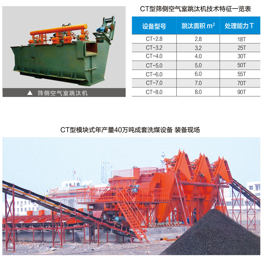 篩側空氣室跳汰機,主要用于含研率較高的工程煤分選,特別是分選指標煤效果更佳,適用于小規模及移動式使用。工藝流程簡單,操作維護方便,自動和手動兩種排研方式,產品指標和結構調整靈活便捷。設備投資及生產成本低。