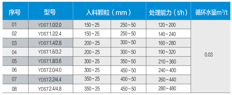 YDST系列動篩跳汰機(jī)技術(shù)參數(shù)表