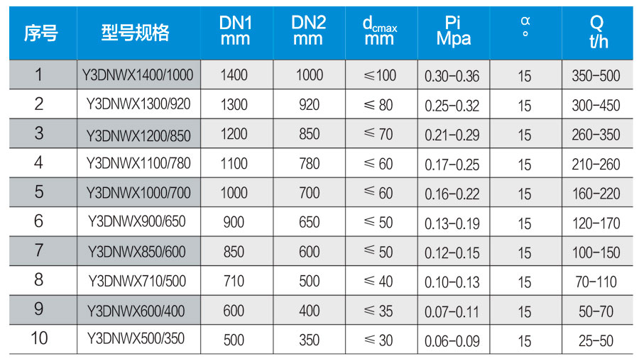 Y3DNWX系列無壓給料三產(chǎn)品重介質(zhì)旋流器技術(shù)參數(shù)表